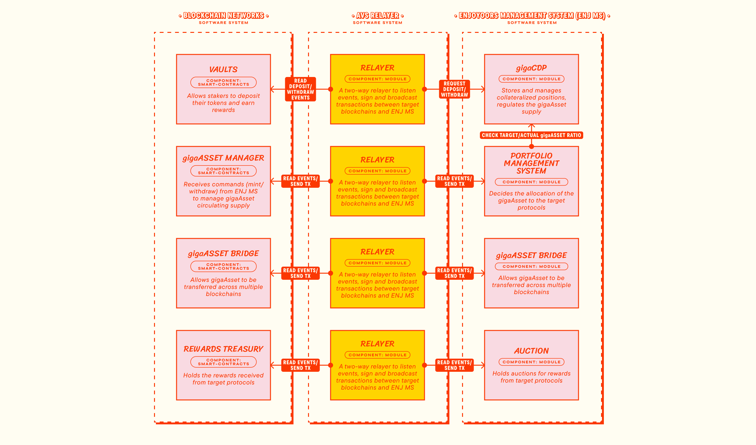 By acting as a secure and efficient bridge, Relayers ensure seamless communication between the ENJ MS and supported blockchain networks. Relayers transmit information related to the following operations within the Enjoyoors protocol: